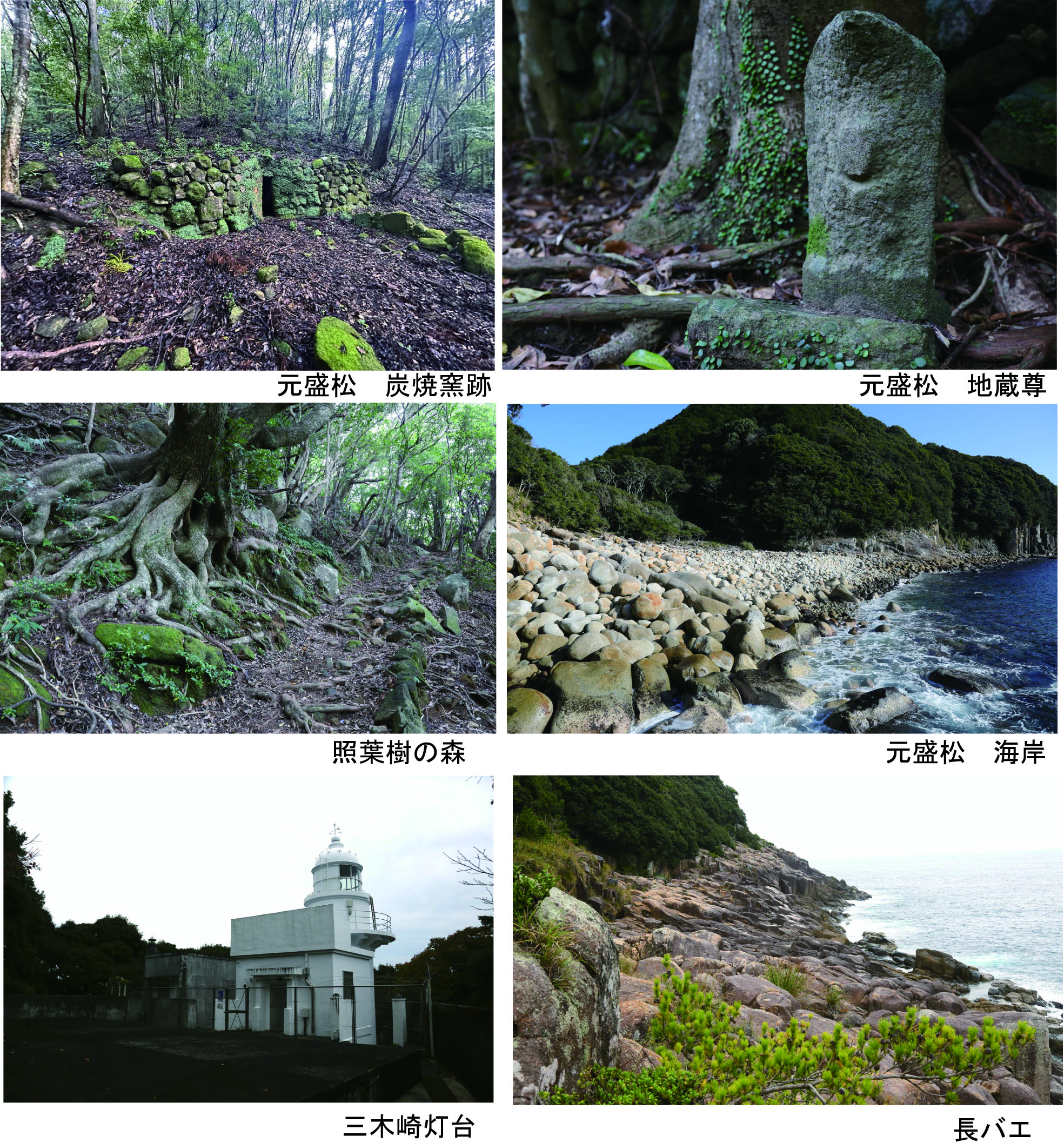 棚田を獣から守る立派な猪垣と棚田を造る石垣が見事な耕作地跡が広がる太地(タージ)、昭和2年(1928年)から3年にかけて、住民が全員で三木浦へ移住して廃村となった住居遺跡、元盛松(サガリマツ)などの集落跡と初春にヤブツバキの群生が咲き乱れる遊歩道が美しい三木埼灯台などを巡る予定です。