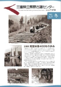 熊野古道センターでは、センターで行った様々なイベントの様子や熊野古道の自然を紹介するニュースレターを発刊しています。 「熊野古道センターからのてがみ」のバックナンバーを下記よりダウンロードしていただけます。